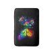 Regenbogen, leuchtend, künstlerisch bemalt Monarchen Schmetterling mit einem Bouquet aus glänzenden, hellen, leuchtenden Rose auf schwarzem Hintergrund. Regenbogenschmetterling.