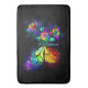 Regenbogen, leuchtend, künstlerisch bemalt Monarchen Schmetterling mit einem Bouquet aus glänzenden, hellen, leuchtenden Rose auf schwarzem Hintergrund. Regenbogenschmetterling.