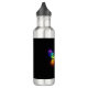 Regenbogen, leuchtend, künstlerisch bemalt Monarchen Schmetterling mit einem Bouquet aus glänzenden, hellen, leuchtenden Rose auf schwarzem Hintergrund. Regenbogenschmetterling.