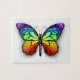 Realistischer Monarchschmetterling in allen Farben des Regenbogens auf einem weißen Hintergrund. Regenbogenschmetterling
