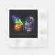 Regenbogen, leuchtend, künstlerisch bemalt Monarchen Schmetterling mit einem Bouquet aus glänzenden, hellen, leuchtenden Rose auf schwarzem Hintergrund. Regenbogenschmetterling.