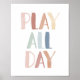Dekorieren Sie Ihr kleines Kinderzimmer, Schlafzimmer oder Spielzimmer mit dieser Aquarellfarbe 'play den ganzen Tag', mit Regenbogenfarben.