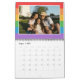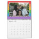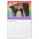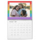 Foto-Kalender für LGBT-Familien mit einem großen Foto für jeden Monat gegen Regenbogenstreifen.