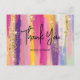 Vielen Dank Postcard mit abstraktem Hintergrund Design. Lebhafte Streifen in fett- und pastellfarbenen Farben. Pinks, Blues, Pfefferminzen und Gelbtöne kombiniert mit Imitaten funkelnd Glitzer in Gold überlagert.