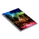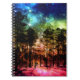 Schöner Regenbogennebel vor coolen schwarzen Bäumen.
