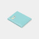 Sticky Noten mit einem kindgerechten Thema. Das Design besteht aus weißen Polka-Punkten, die den unteren Rand auf einem blau-grünen Hintergrund verzieren. Ein glücklicher Einhorn fröllt unter einem bunten Regenbogen mit flauschigen Wolken. Blume, Schmetterlinge und Erdbeeren verleihen dem Design eine charmante Touch.