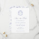 Regency Blue Monogram Wappen, Hochzeit speichern Sie die Datumskarte. Vintages inspiriertes Wappen im Barockstil mit Chinoiserie Garten Blumenmuster Backing.