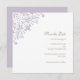Chic und elegant Französisch Regency lila Lilie Muster Hochzeit speichern das Datum Design. Detaillierte Lilie Eckmuster in der Wisteria lila. Passen Sie Ihre Namen und Ihre Hochzeitsinformationen in dunklen Taupe Buchstaben an. Entworfen, um unsere französische Regency Lila Lilie Wedding Collection zu entsprechen.