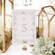 Die Regency Monogram Tischnummer Card aus der Victoria Collection besticht durch handgezeichnet Renaissance-Stilflorale, die die Hochzeitsdetails in einem klassischen, eleganten Schriftart-Stil umrahmen. Dieses zeitlose Design macht Ihren Gästen einen bleibenden Eindruck!