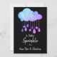 * Eine süße Niedliche Freude Whimsical Watercolor OMBRE PINK LILA TURQUOISE BLUE CLOUD mit passendem Imitat GLITZER beim Aufhängen von der Wolke sind festliche Watercolor GLITZER RAIN DROPS UND STARS Sprinkle Baby Shower Invitation.