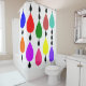 Dieser Duschvorhang hat ein modernes Design von Tropfen auf Linien, die wie Regenketten aussehen.