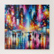 Unter schimmernden Lichtern der Stadt glitzern regendurchtränkte Straßen, während Regenschirme durch die Menge weben. Lachen, Chat und Reflexionen schaffen ein lebendiges, dynamisches urbanes Wandbild.
