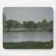 Dieses Mousepad besticht durch ein originelles Kunstwerk einer grauen und regnerischen Seezunge, die in Vue d'Esprit vom Künstler Jayne Wilson entworfen wurde. Eine Entenfamilie kommt durch den See, wenn die Regentropfen fallen. Eine Steinbrücke führt zu einer Hütte auf der anderen Seeseite.
