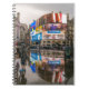 Foto von Piccadilly Circus in London an einem regnerischen Tag mit den berühmten Lichtern, die auf dem Bürgersteig auf dem Cover eines Notebooks gedruckt.