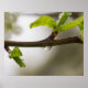 Am Frühlingstag ist ein Regentropfen unter einem Ast nah.