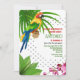 Eine Tropischthema Einladung mit exotischem Laub und Orchideen und ein bunter Papagei hockte auf einer Niederlassung. (<a href='https://www.freepik.com/free-vector/special-offer-summer-sale-lettering-colorful-tropical-background-with-parrot-and-orchid_2541759.htm'>Entworfen durch Katemangostar</a>). <br/><br/>Die Karte ist einfach, mit Ihrer Benennung, Schriftart und Schriftartfarbe besonders anzufertigen<br/><br/>Nicht genau was suchen Sie? Alle unsere Produkte können kundenspezifisch angefertigt werden, um Ihren Bedarf an keiner Extragebühr zu erfüllen<br/><br/>Treten Sie mit uns einfach bei askcottonlamb@gmail.com in Verbindung. <br/><br/>Koordinierenprodukte verfügbar: Fragen Sie uns einfach!