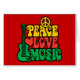 Schreiben Sie Entwurf des FRIEDENS, der LIEBE u. der MUSIK mit Gitarre, des Friedenssymbols, des Herzens und der musikalischen Anmerkungen in Gelbem, im Rot und im Grün.