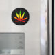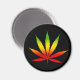 Rasta Leaf © Sunny Mars Designs. Cooler, anpassbarer Jamaikanischer Reggae Rasta Leaf kundenspezifischer runder Kühlschrank- oder Kühlschrank-Magnet mit einer Silhouette eines Rastafarienblattes in grün, gelb und rot Jamaika-Farben.