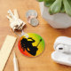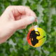 © Sunny Mars Designs. Reggae Rastaman Button Keychain – Cool Jamaican Reggae standard classic round keyring with a the silhouette of a Rastafarian man singing reggae music and playing guitar on an abstract background in green, yellow and red Jamaica colors.