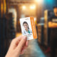 Personalisieren Sie dieses berufliche blaue Foto ID Orange Abzeichen mit Ihren persönlichen Daten.