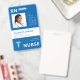 Modernes Typografie-Krankenhaus oder medizinisches Zentrum Mitarbeiter RN Krankenschwester Custom Foto personalisiert blaues ID-Abzeichen mit fett Typografie, Strichcode und Ihr Logo. +++++++++++-Vorlage, leicht mit Ihrem Foto und den Details auf beiden Seiten zu personalisieren.