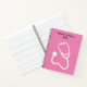 Medizinisches Notizbuch für eine berufliche Krankenschwester mit Bild eines Stethoskops und Monogramm-Bereich für alle Krankenschwester oder Monogramm-Initialen, die Sie online mit einer rosa Hintergrundfarbe, die Sie verlassen oder ändern können, anpassen können.