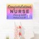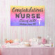 Zeigen Sie ein cooles Design-Krankenschwester Abschluss-Banner-Zeichen für Ihr Party. Beide Seiten des Banners sind mit einem Imitat Regenbogen Glitzer Hintergrund und einem weißen Kaduceus Symbol. Der Text ist "Gratulations Krankenschwester" und benutzerdefinierte Klassenjahr gefolgt von dem vollen Namen der Krankenschwester ist in einer Mischung aus weißen gebürsteten Skript und Blockschrift. Klicken Sie auf "Vorlage personalisieren" und geben Sie Name und Jahr ein.