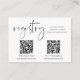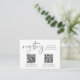 Möchten Sie mehr Details zu Ihrer Einladung hinzufügen? Diese individuell anpassbare Gehäusekarte verfügt über weiche schwarze Kalligraphie-Schrift und Blockschrift. Passen Sie den Text an, und personalisieren Sie ihn, um ihn an Ihre Veranstaltungsfarben oder -themen anzupassen. Diese doppelte Registrierungseintrittskarte enthält zwei individuell anpassbare QR-Codes und Platz für Ihre geschriebenen URLs.