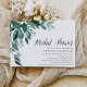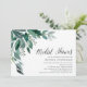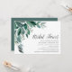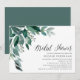Die schicke Brautdusche lädt mit üppig grünen Eukalyptus-Blätter illustriert in Aquarell ein. Personalisieren Sie Ihre Brautparty-Details, die auf der rechten Seite ausgerichtet sind. Die Karten werden zu einem festen Waldgrün umgeschaltet.