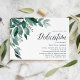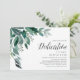 Die botanischen Einladungen für Ihr Baby sind mit grünen Eukalyptus-Blätter und einem in Aquarellfarbe illustrierten Blätterdach gestaltet. Passen Sie Ihre persönlichen Widmungsdetails auf der rechten Seite an und verzieren Sie sie mit schicken Kalligrafien. Die Einladungen kehren in feste Waldgrün um.