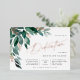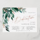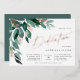 Eine elegante Einladung für Ihr kleines Mädchen mit Aquarellfarben-Eukalyptus-Blätter und grünem Blattkaskadieren aus der oberen links Ecke, verziert mit Rose Goldfolienakzenten. Personalisieren Sie mit Ihrer Widmung Zeremonie und Feiern Details auf der rechten Seite ausgerichtet. Die Karten werden zu einem festen Waldgrün umgeschaltet.