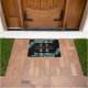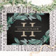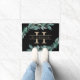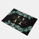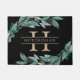 Elegante botanische Türmatte in schwarz weist Ihr Single anfängliches Monogramm mit Ihrem Familiennamen überlagert auf, gerahmt durch Aquarellfarben-Blätter und Blattwerk in satten Grüntönen.