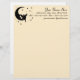 Eine Silhouette einer Fee, die auf dem Mond sitzt und von Sternen umgeben ist. Bearbeiten Sie die Textzeilen, um Ihren Namen, Ihre Adresse, Ihre Telefonnummer und Ihre E-Mail-Adresse einzufügen. Verändern Sie die Farbe des Papiers in.