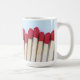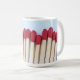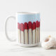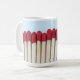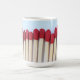 Eine Tasse mit einem Foto von Streichhölzern, umwickelt.