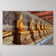 Wunderbarer Anblick einer Reihe goldener Buddhas an den Wänden eines alten Tempels in Bangkok, Thailand.