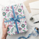 Reindeer and Snowflakes Pattern in Pink and Green Geschenkpapier