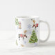 Enjoy your warm holiday drinks with this charming Classic Mug. The design features a continuous, repeating watercolor pattern of festive reindeer in snow-covered scenes, surrounded by decorated Christmas trees and snowflakes. This cheerful mug is perfect for the winter season, makes a great stocking stuffer, or serves as a lovely addition to any holiday kitchen collection.