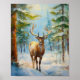 Reindeer in a Winter Forest Modern Art Poster