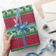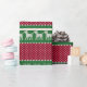 A playful faux-knit design featuring rows of white reindeer marching across festive red and green stripes. Classic Christmas sweater style for cozy cheer.