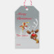 Blaue Schneeflocke minimalistisch roten Buchstaben Geschenk Tag. Dieses Geschenketikett zeichnet sich durch ein blaues Schneeflockendesign aus, das in einem minimalistischen Stil gehalten ist. Die Schrift auf dem Tag ist rot. Das Geschenketikett enthält auch einen Rentier Rudolph auf grauem Hintergrund. Der Hintergrund des Anhängers ist ein einfaches Grau, das den Rentieren einen neutralen Hintergrund bietet. Das Rentier, das dargestellt wird, ist Rudolph.
