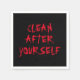 Reinigen Sie nach sich selbst roten Vampirblut Typografie beängstigend lustige Halloween Party Papier Servietten. Rotes Blut anpassbarer Text auf schwarzem Hintergrund. Vollständig anpassbarer Text, sodass Sie Ihre eigene Phrase schreiben können.