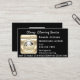 Die Reinigungsdienstkarte ist mit goldfarbenen Reinigungsmitteln geschmückt. Beste für kommerzielle oder Wohndienstleistungen für Reinigung, Hausmeister, Zimmermädchen, Zuhause-Service, Hausmeisterservice, Hausmeisterservice, Hausmeisterausstattung. FlorenzK Design
