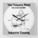 Werben Sie für Ihr Reinigungsgeschäft. Machen Sie es persönlich, indem Sie Ihren Firmennamen und Telefonnummer. Umfasst einen dunklen Hintergrund der Uhr. Ideale Uhr für ein industrielles Reinigungsunternehmen oder ein industrielles Reinigungsunternehmen.