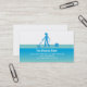 Geschäftskarte mit einer iconic Silhouette eines beruflichen Reinigers in den Schatten des Blaus.