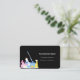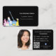 Eine elegante und glamouröse Visitenkarte auf schwarzem Hintergrund, die mit Reinigungsmitteln geschmückt ist. Personalisieren Sie Ihr Foto, Ihren Namen, Ihre Textkontaktdaten und Ihren eigenen QR-Code und fügen Sie ihn Ihrer Website-Adresse hinzu.