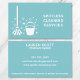 Eine moderne Visitenkarte für Reinigungsunternehmen, berufliche Reiniger, Zimmermädchen und Hausmeister. Die Karte verfügt über eine Mopp- und Eimerkarte mit Seifensuds und Glitzern. Ein gewagtes Design auf türkisfarbenem Hintergrund. Bearbeiten Sie die Vorlagen für Ihre eigene Visitenkarte.