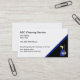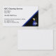 Moderne Reinigungsservice Visitenkarten mit weißem Hintergrund, die Sie anpassen können, Textraum, den Sie personalisieren können, und Bild eines Mop und Reinigung Spritzflasche. Umfasst zwei Seitendrucke und ist für eine Wohn- oder kommerzielle Reinigungsleistung konzipiert.