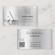 Eine elegante und glamouröse Visitenkarte auf einem silbermetallicfarbenen Imitat mit Imitaten Glitzer Staub auf der Vorderseite und Reinigungsanlagen. Personalisieren Sie Ihr Firmenlogo, Ihren Namen, Ihre SMS-Kontaktdaten und Ihren eigenen QR-Code und fügen Sie ihn Ihrer Website-Adresse hinzu.