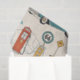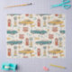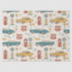 Ländliches, reiseinspiriertes Muster-Seidenpapier mit altmodischen Autos, Vintage-Verkehrsschildern, Blättern und Retro-Abenteuer-Elementen im charmanten Landhausstil. Ideal für Roadtrip-Enthusiasten, Vintage-Liebhaber, Reisende und alle, die nostalgische Reiseästhetik lieben.