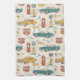 Rustikales, reiseinspiriertes Muster für ein Küchentuch mit alten Autos, Vintage-Verkehrsschildern, Blättern und Retro-Abenteuerelementen im charmanten Landhausstil. Ideal für Liebhaber von Roadtrips, Vintage-Enthusiasten, Reisende und alle, die nostalgische Reiseästhetik lieben.
